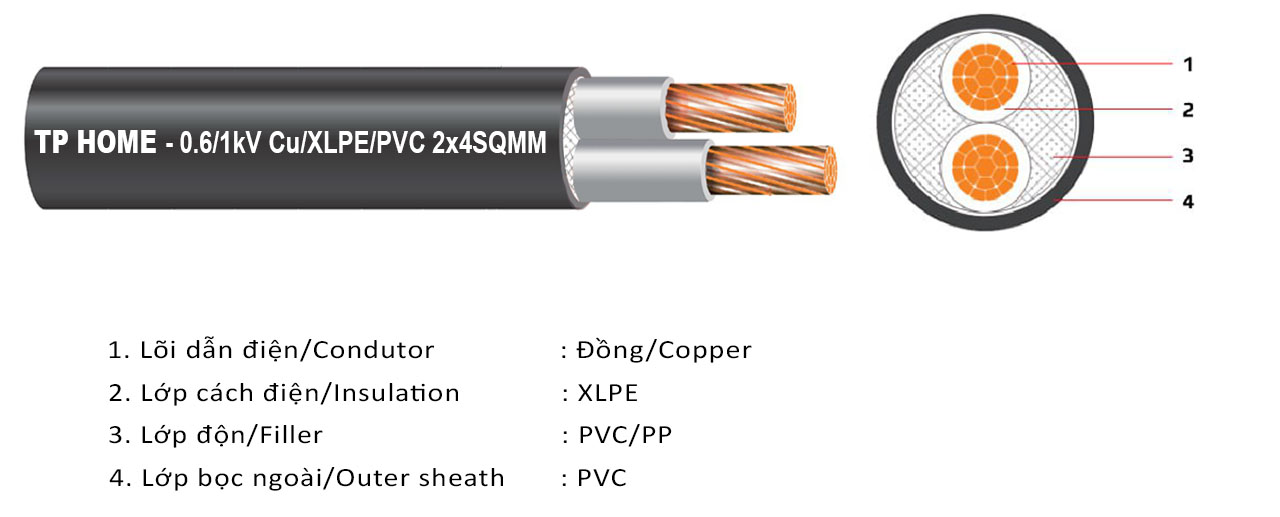 Cáp truyền dẫn: CXV – 2x10 mm2