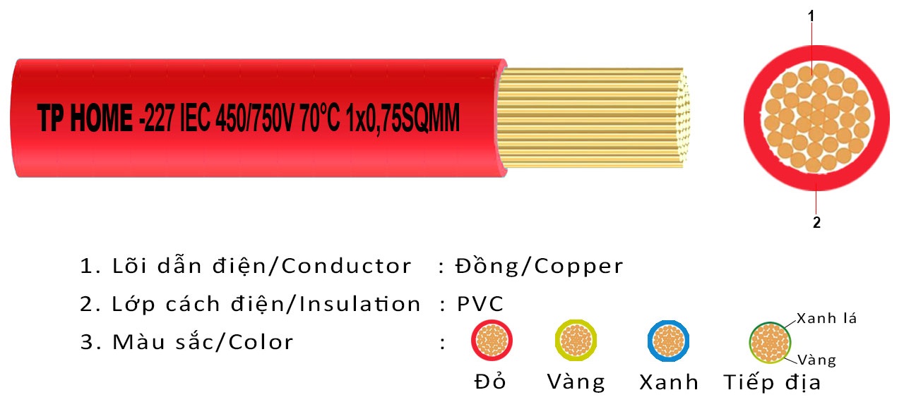 Nhiệt độ làm việc giới hạn của ruột dẫn: 70oC